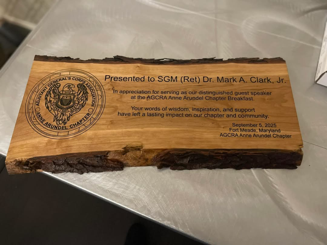 On 5 September, the Anne Arundel Chapter of AGCRA hosted a memorable breakfast gathering that brought together members, leaders, and supporters of the Adjutant General’s Corps. The event was highlighted by the presence of SGM (Ret.) Dr. Mark A. Clark, Jr., President of AGCRA, along with other distinguished guests who shared valuable insights, encouragement, and a strong sense of community.