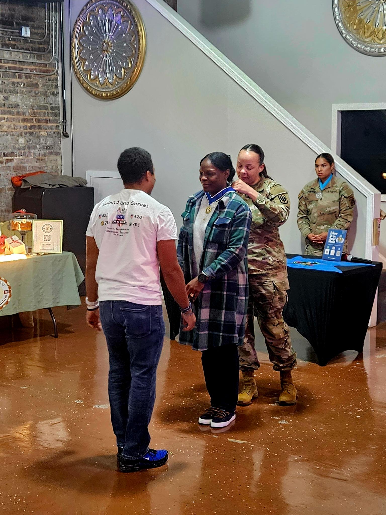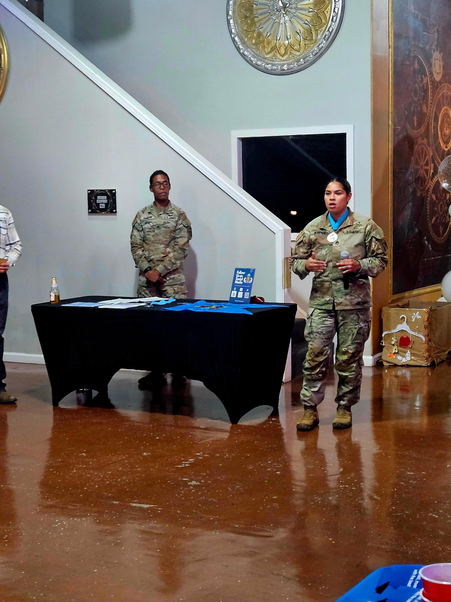 MAJ Tanisha Smith, 525th EMIB S1 Officer in Charge, was awarded the COL Robert L. Manning Achievement Medal for her extraordinary achievements and service in support of the objectives and purposes of both the Adjutant General’s Corps and AGCRA. MAJ Smith was instrumental in the planning and execution of the Right Arm Night and has consistently demonstrated excellence in supporting Soldiers and Families in her current and previous assignments. The Iron Mike Chapter looks forward to continued partnership with MAJ Smith and the 525th EMIB team.
